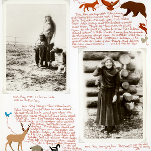 Le fonds contient des photos prises par Mary T. Sullivan Roy (1899-2005), enseignante. La famille Sullivan vivait à l'époque à Sheenboro, en Outaouais. Mary, sa collègue Cécilia Downey et parfois le prêtre, partaient du village Rapides-des-Joachims et montaient en charrette tirée par des chevaux jusqu'au Lac Dumoine (Big Lake). Un guide anicinabe venait les chercher en canot avec un moteur hors-bord rudimentaire et ils allaient par la suite dormir à l'embouchure de la Rivière de l'Orignal où quelques familles anicinapek avaient leur campement. Ce lieu se nomme Mos Sakik. Le lendemain le groupe reprenait la route en montant la Rivière de l'Orignal jusqu'au Grand Lac Victoria (Grand Lake). Ses voyages se sont déroulés entre 1920 et 1924, elle semble avoir travaillé à la pointe du Grand Lac, au Lac Simon et peut-être bien à Jackson Landing également.