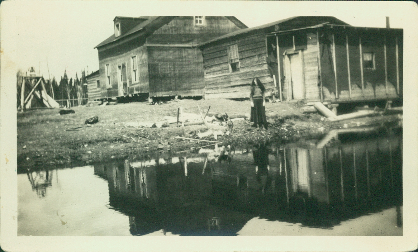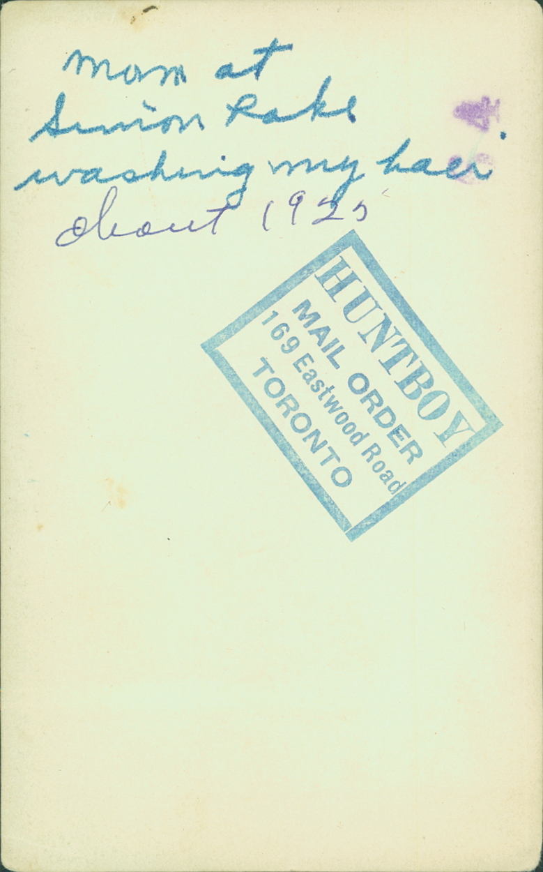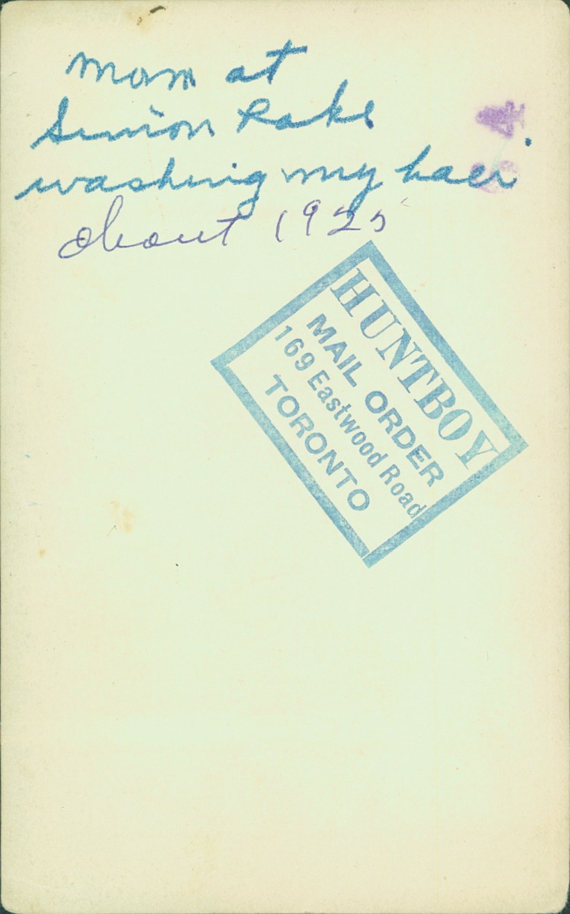 Verso : « Mom at Simon Lake wahsing my [?]. About 1925. »