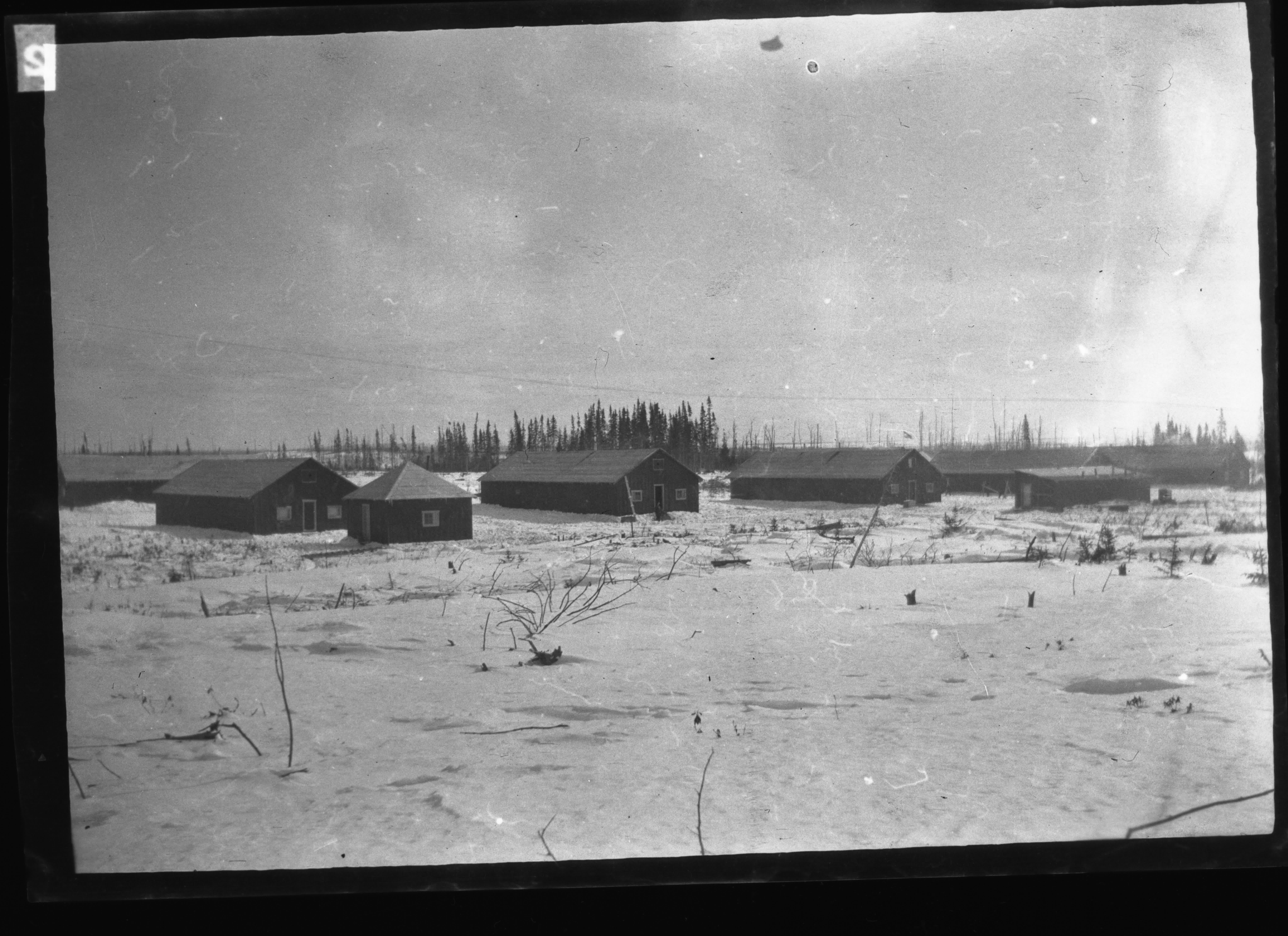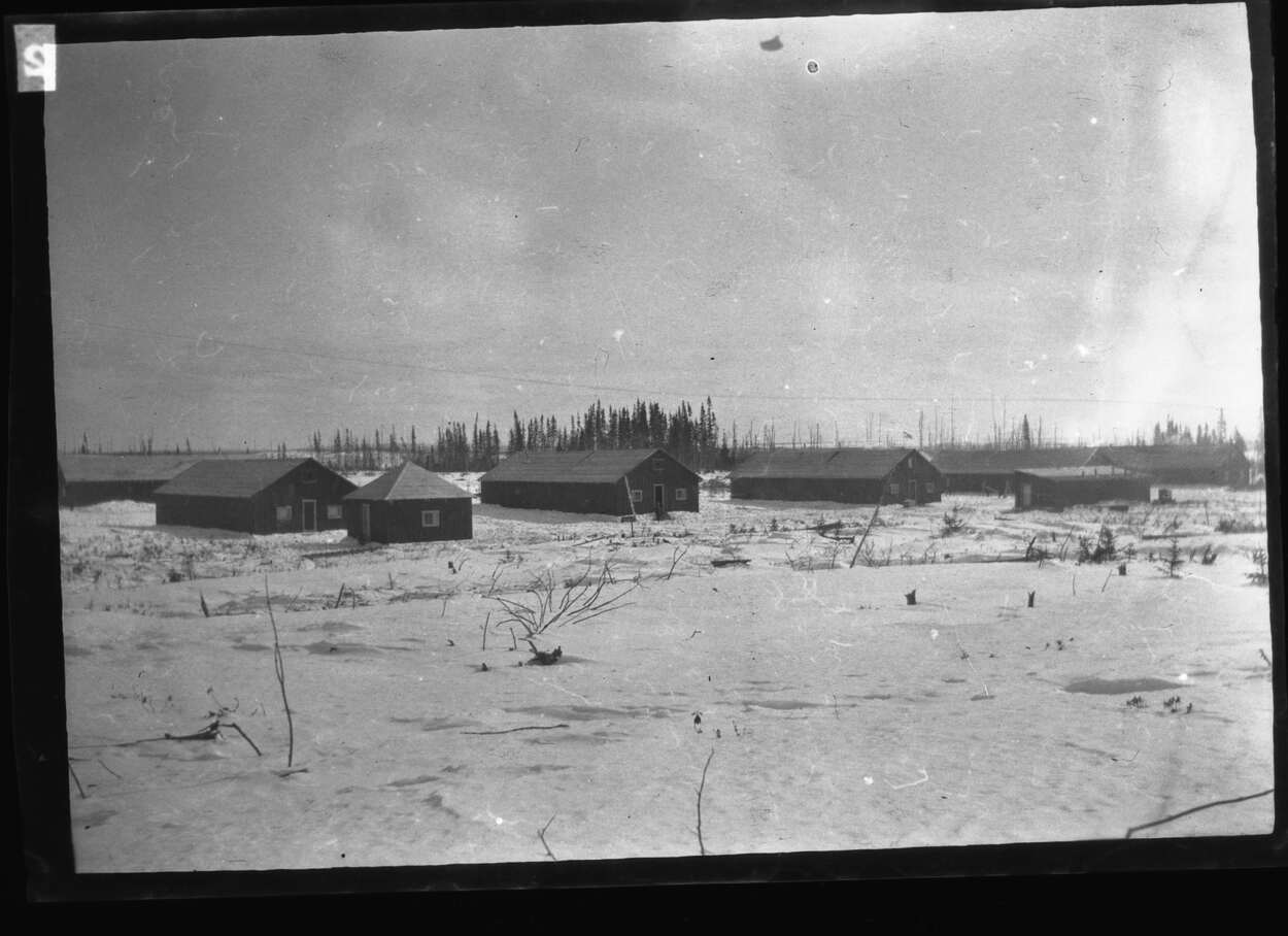 Cinq casernes du camp de prisonniers