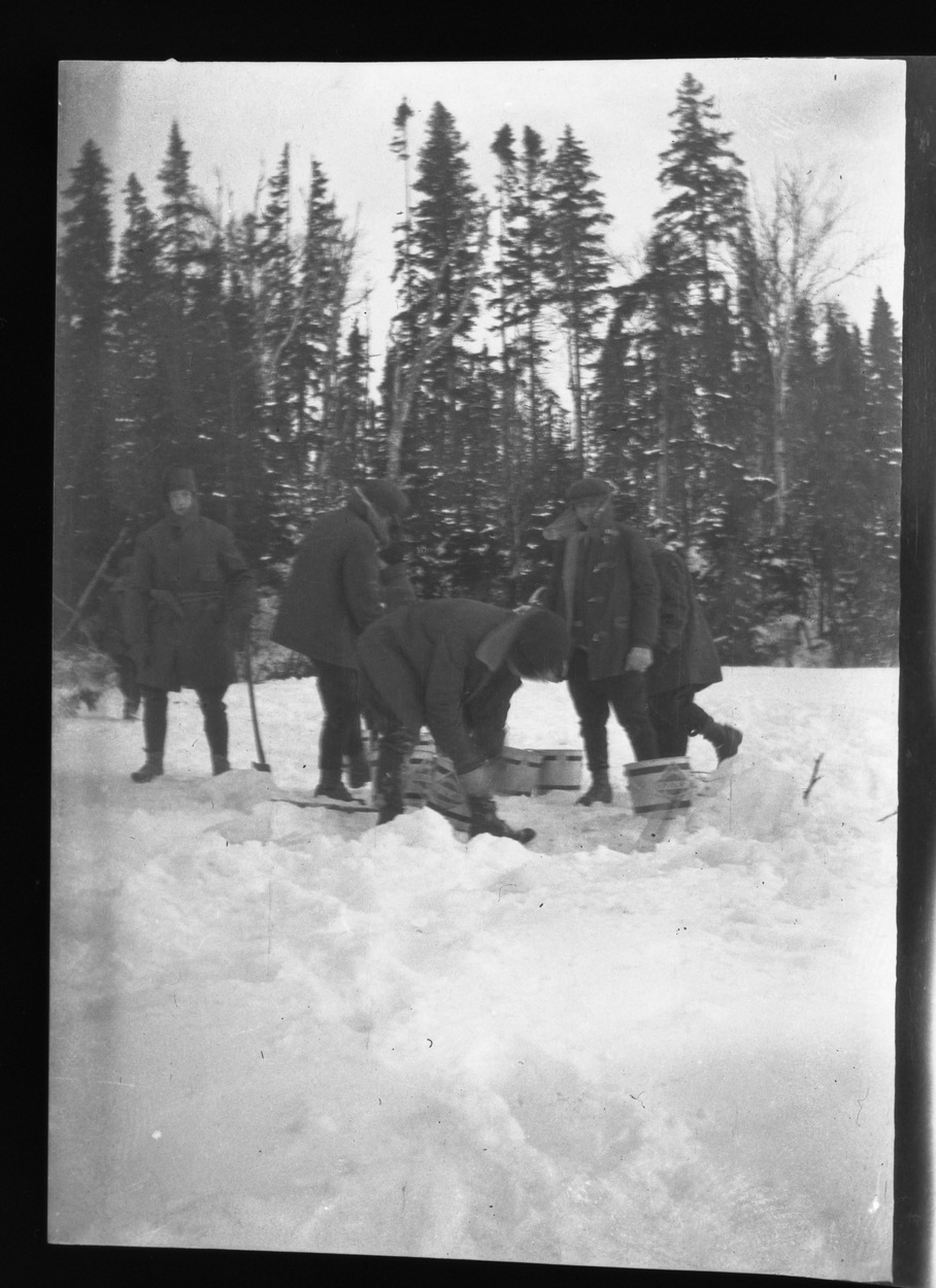 Cinq prisonniers au travail