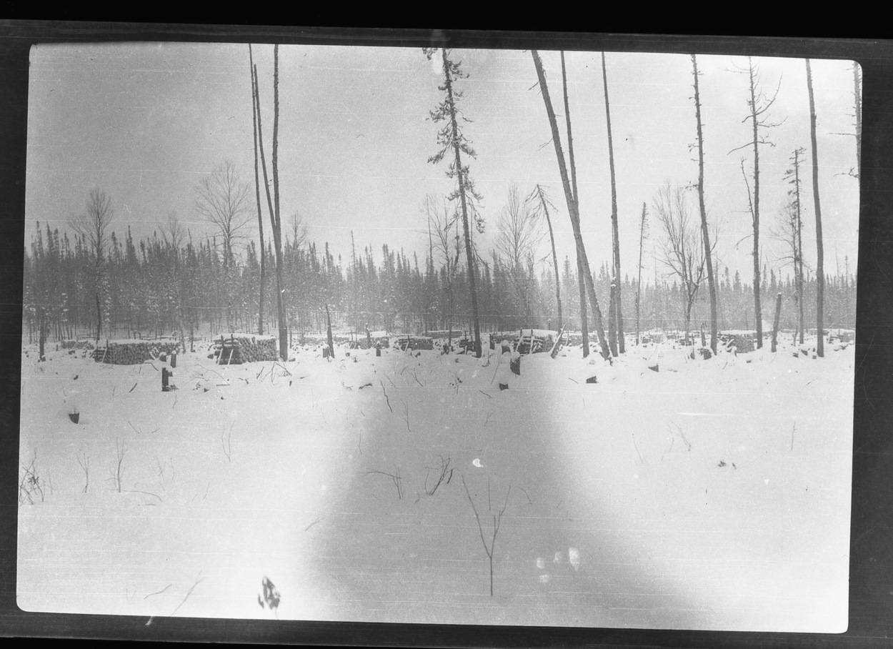 Billots de bois dans une zone déforestée