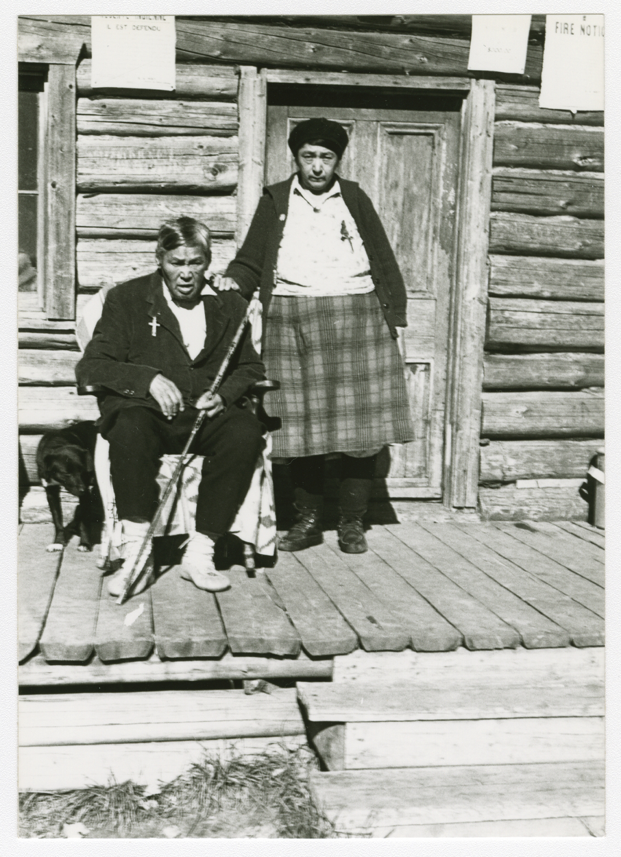 Deux hommes et une femme sur un perron [Maggie Echaquan]